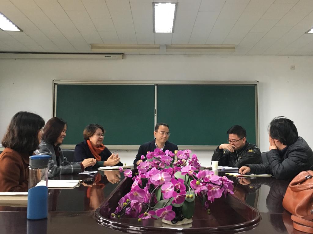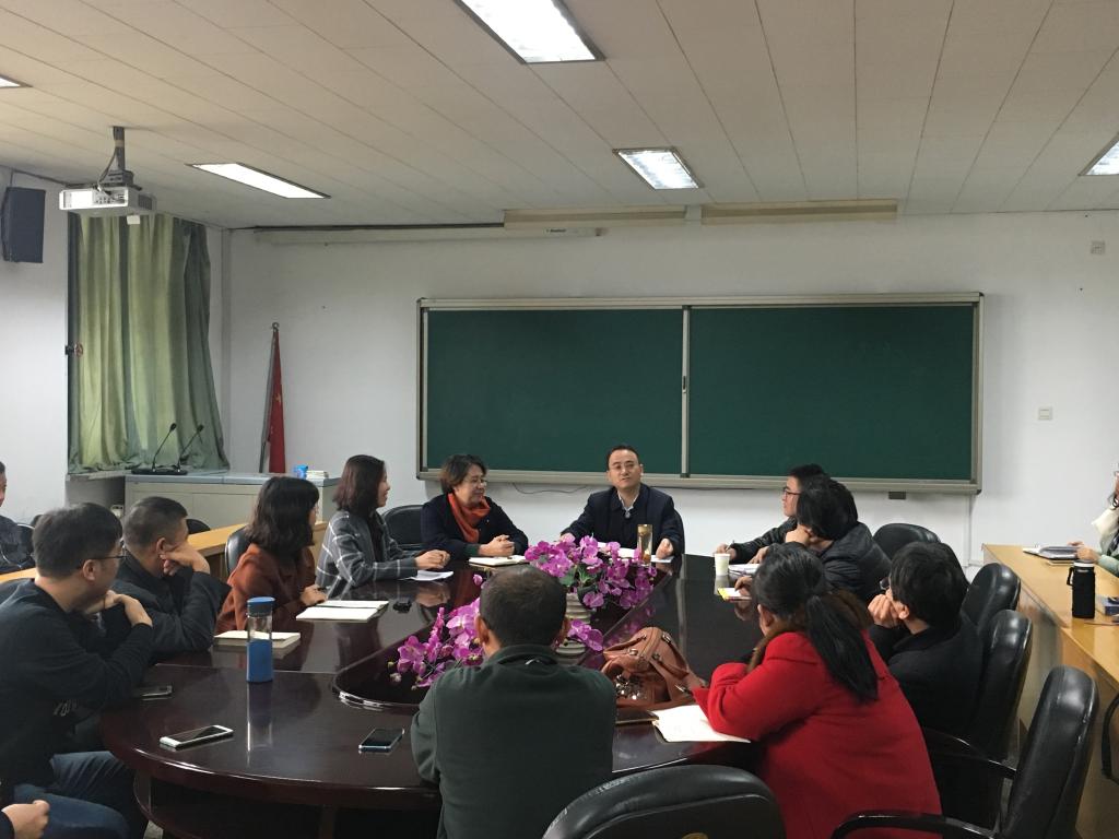 2018年11月15日上午,副董事长王建华、社科处副处长董斌一行赴vsport官方网站就2019年国家社科基金项目申报工作调研指导,文公司党委书记吴华英、经理赵变亲、副经理栗永清、副经理李伟以及vsport官方网站相关教师参加了调研会,会议由副经理李伟主持。