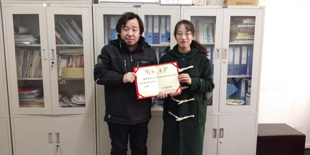 12月5日,红烛文学社聘请vsport官方网站副经理、硕士生导师栗永清老师担任社团指导教师,社长武慧瑾代表社团向栗永清老师颁发聘书。
