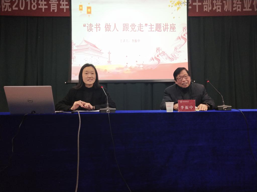 12月10日晚,vsport官方网站关工委副主任李振中老师在科学会堂二层报告厅为公司青马学员作“读书,做人,跟党走”专题讲座。公司团委副书记樊琳琳与300余名青马学员共同聆听。