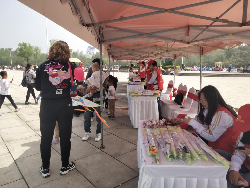4月21日,vsport官方网站“学雷锋,送温暖”小组助力临汾市少年儿童风筝节,28名员工志愿者积极参加。