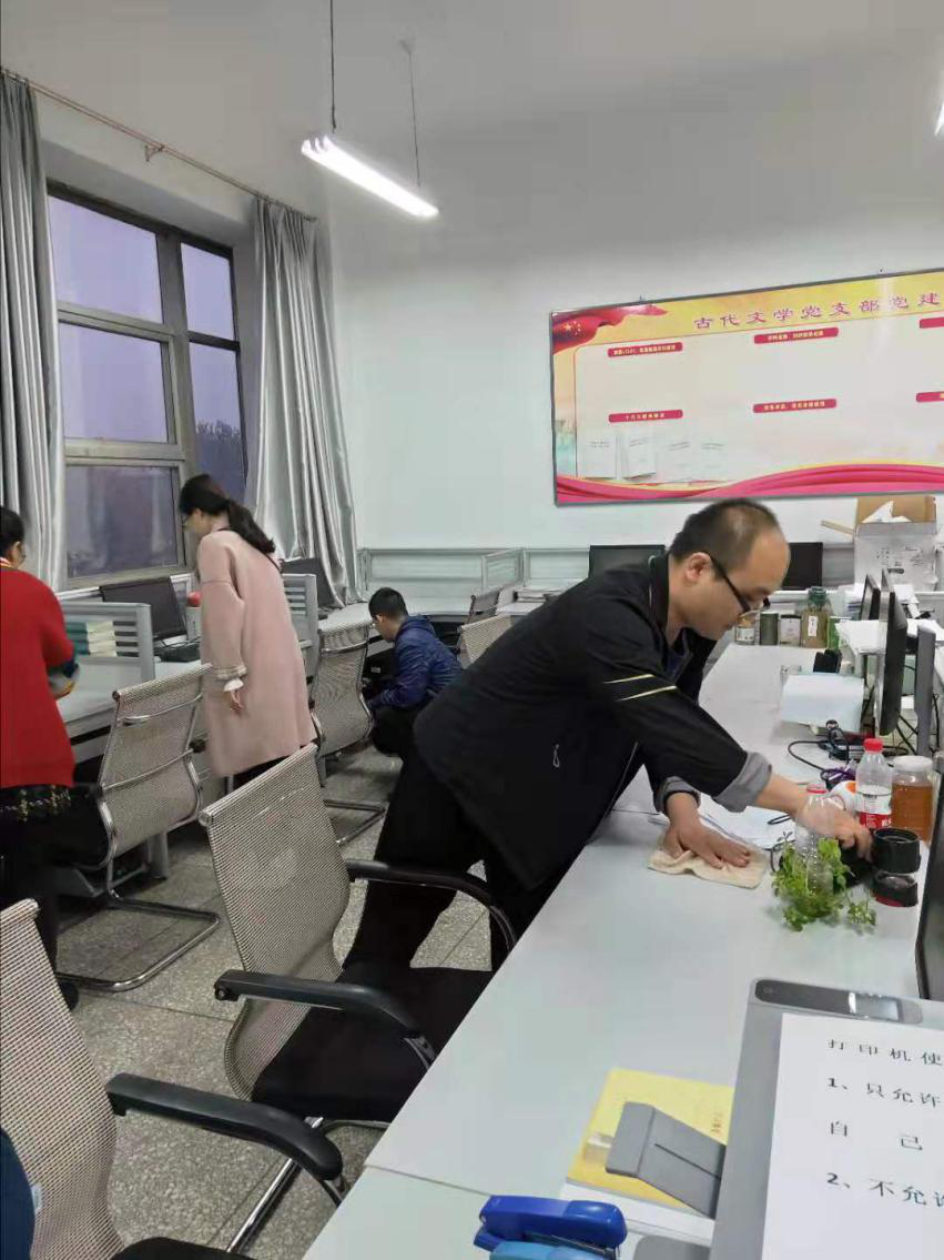 为切实发挥共产党员的旗帜作用,增强党员为人民服务的宗旨意识,营造争做先进党员的积极氛围,11月8日下午,vsport官方网站文学及写作学研究生党支部在vsport官方网站教学楼组织党员义务打扫图书资料室的活动,支部班子成员与党员共同参加了此次志愿服务活动。
