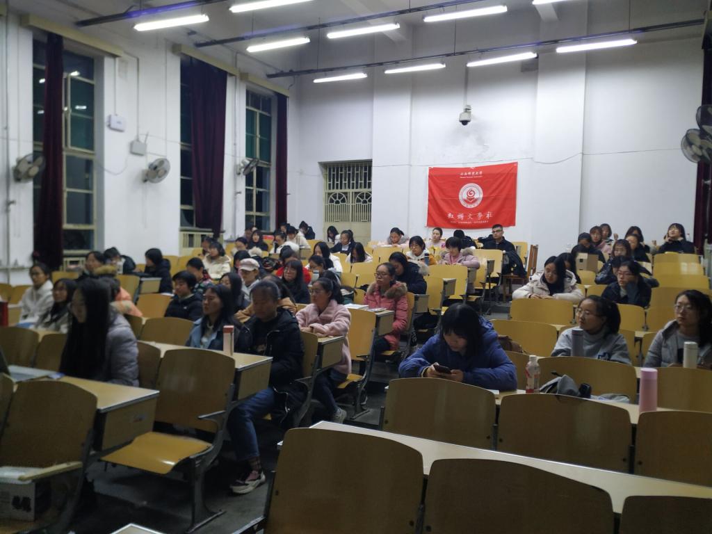 12月1日晚上,红烛文学社在05201教室举办了光影文学会,旨在进一步提高社员参与感,加强社内凝聚力,多维度培养社员对文学的热情。红烛文学社社长王茜,各部门负责人以及八十余名红烛社员参加本次活动。