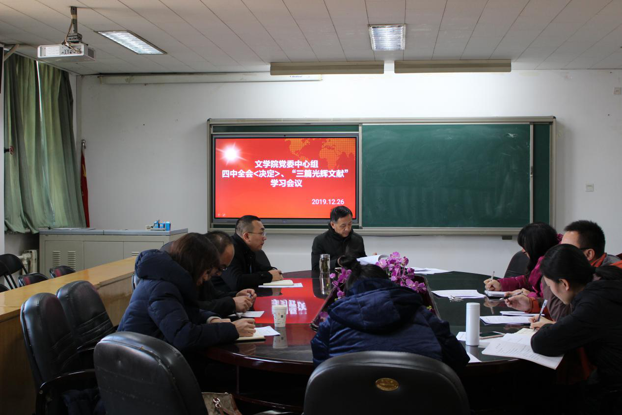 12月26日下午,文公司党委中心组在公司会议室召开党的十九届四中全会《决定》、习近平总书记“三篇光辉文献”学习会议。公司党委书记强汾生主持会议。