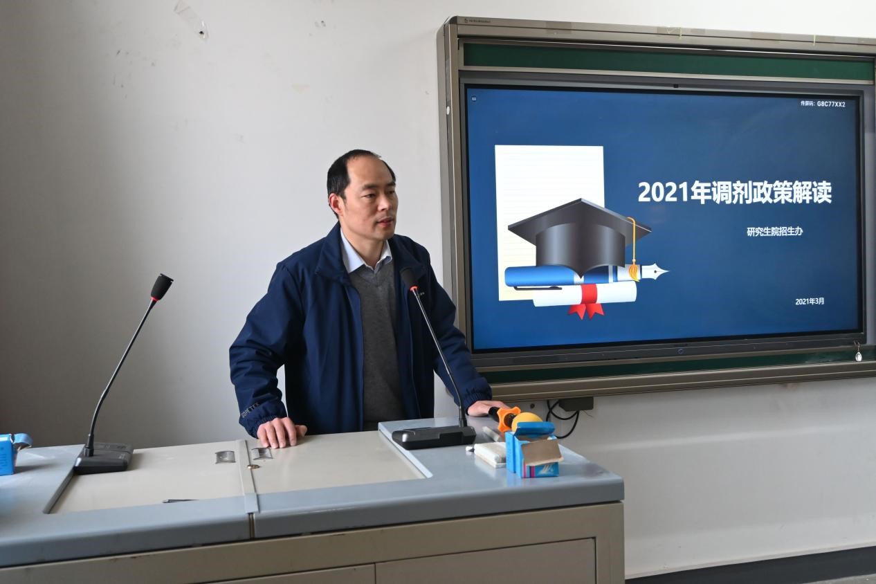 3月21日上午,vsport官方网站在12512会议室举办考研调剂政策讲解,由学习生活作风建设中心承办。本次讲座邀请研究生院副经理张志国担任主讲,vsport官方网站团委副书记樊琳琳出席。