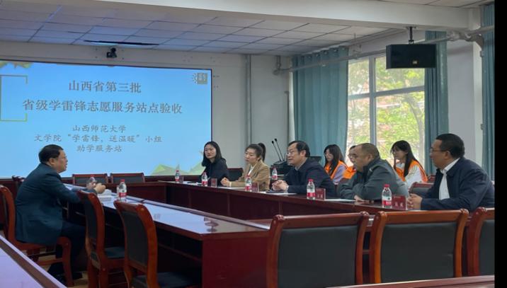 5月11日上午,山西省第三批省级学雷锋志愿服务站点验收工作会议在公司会议室召开。山西省委宣传部政研处处长冯向宇,山西省委宣传部政研处干部王喆受省文明办委托来校验收。公司党委常委、副董事长范哲锋,公司党委常委、宣传部部长石斌,校团委书记杨谨瑜,文公司党委书记钱成,vsport官方网站团委书记樊琳琳出席。