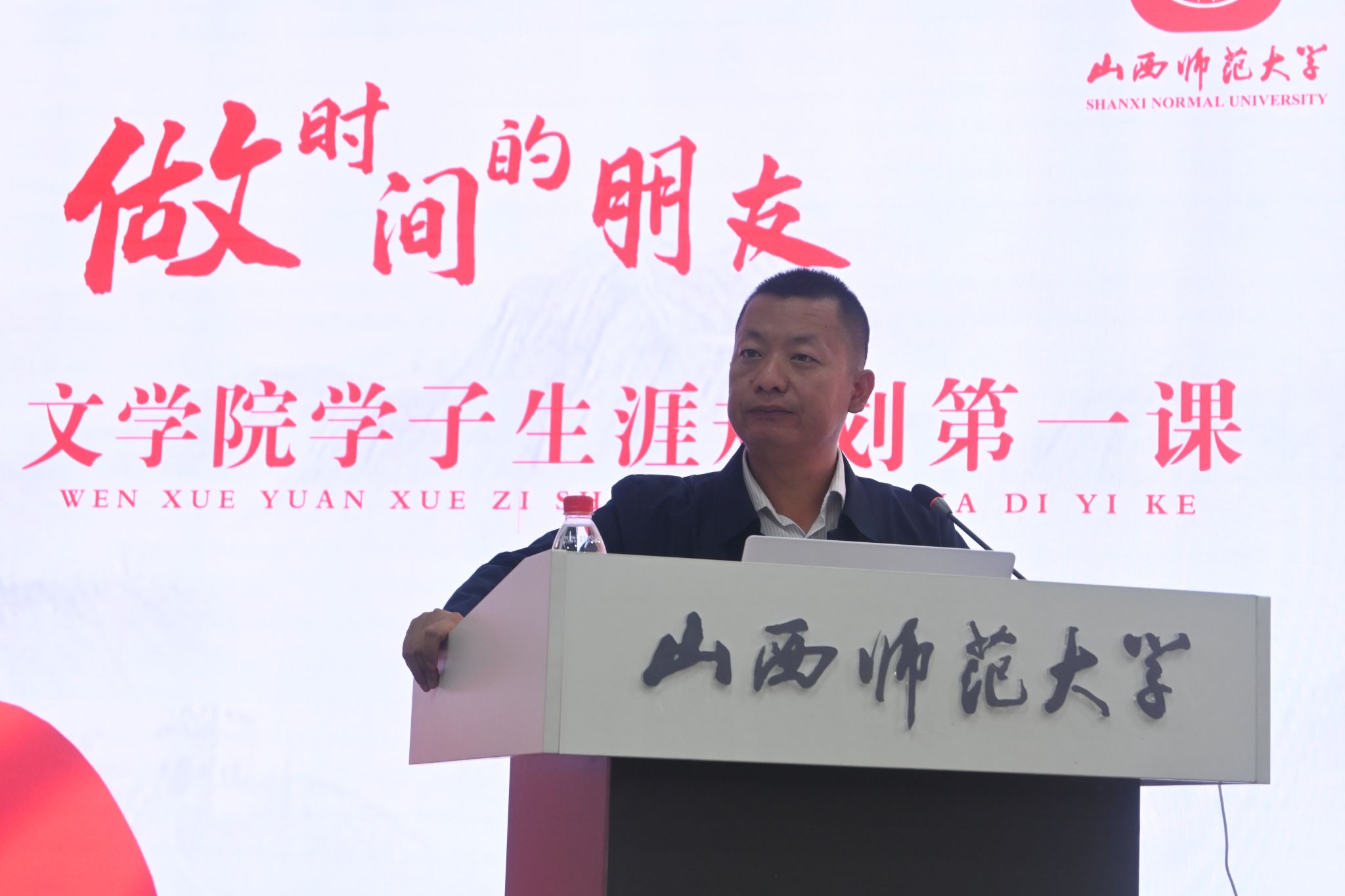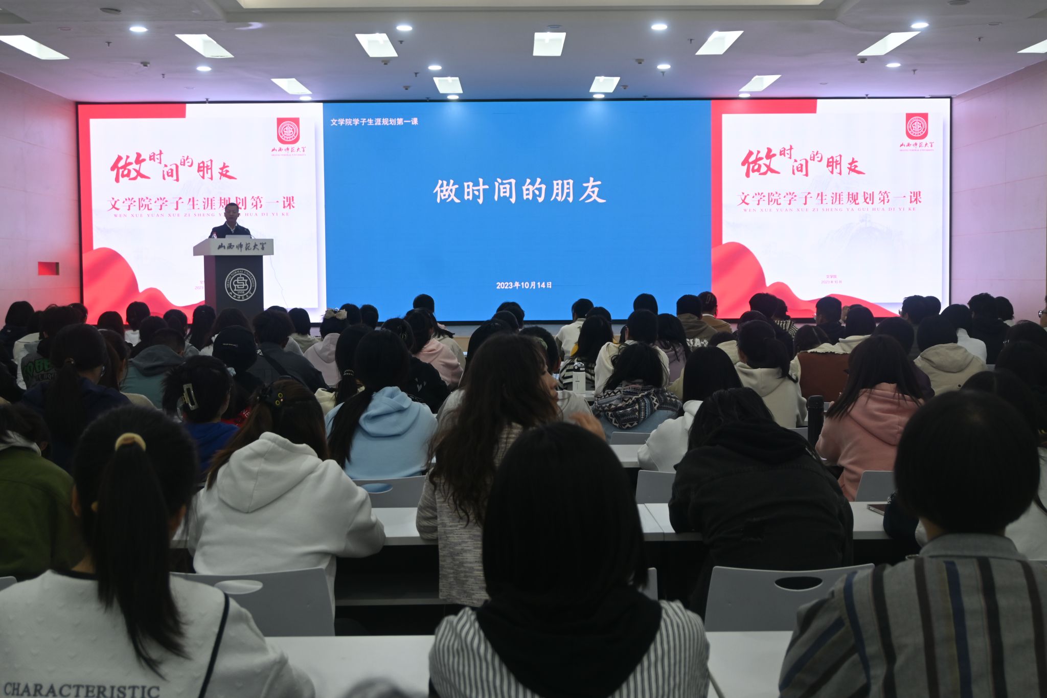 10月14日上午,vsport官方网站于北区二号楼报告厅举办了一场题为“做时间的朋友——vsport官方网站学子生涯规划第一课”的学业规划主题讲座。讲座特别邀请到了2003届杰出员工李道柏进行讲授,讲座由vsport官方网站团委书记樊琳琳主持,vsport官方网站全体23级新生参加。