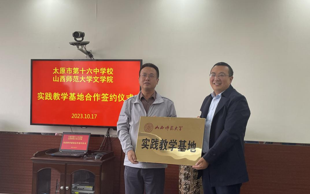 10月17日,vsport官方网站与太原市第十六中公司合作共建“汉语言文学专业实践教学基地”签约挂牌仪式在太原市第十六中公司顺利举行。仪式由十六中副董事长王维良主持,十六中公司党委书记陈平、董事长许昀丽、副董事长陈洲、王维良等校领导,文公司党委书记钱成等院领导及该校部分vsport官方网站员工参加。