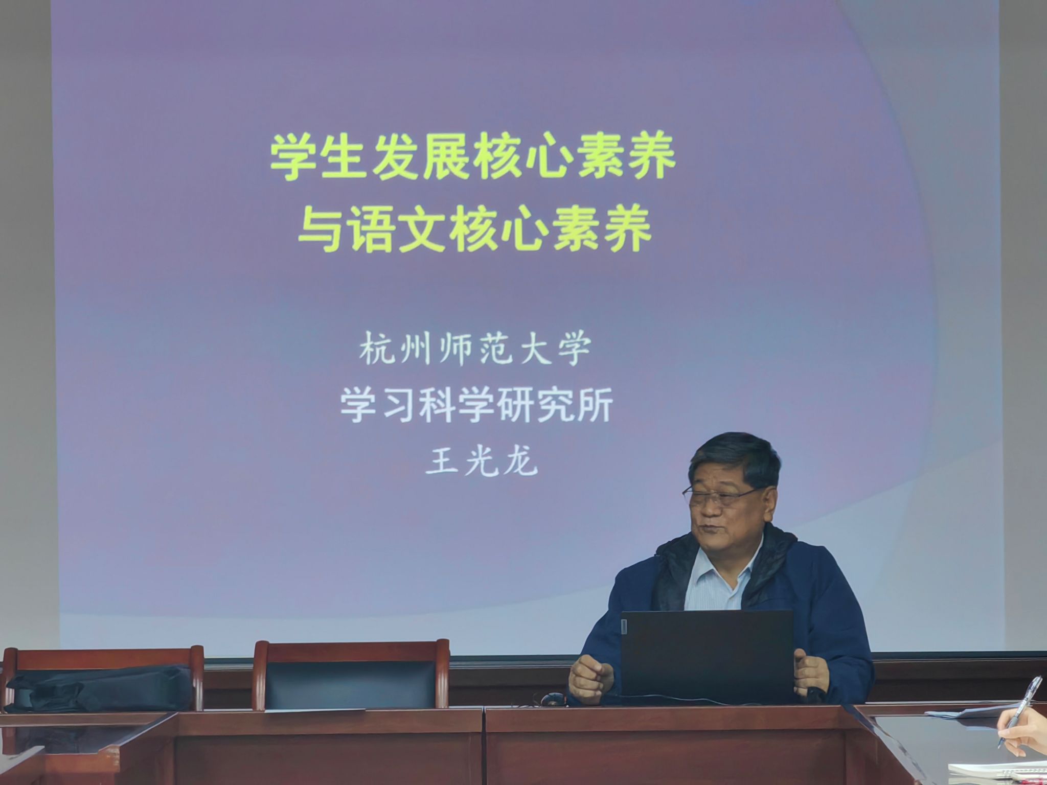 10月17日下午,公司72级员工、杭州师范大学王光龙教授应邀在vsport官方网站会议室作了题为“员工发展核心素养与语文核心素养”的学术报告,副经理李晓敏主持报告会。