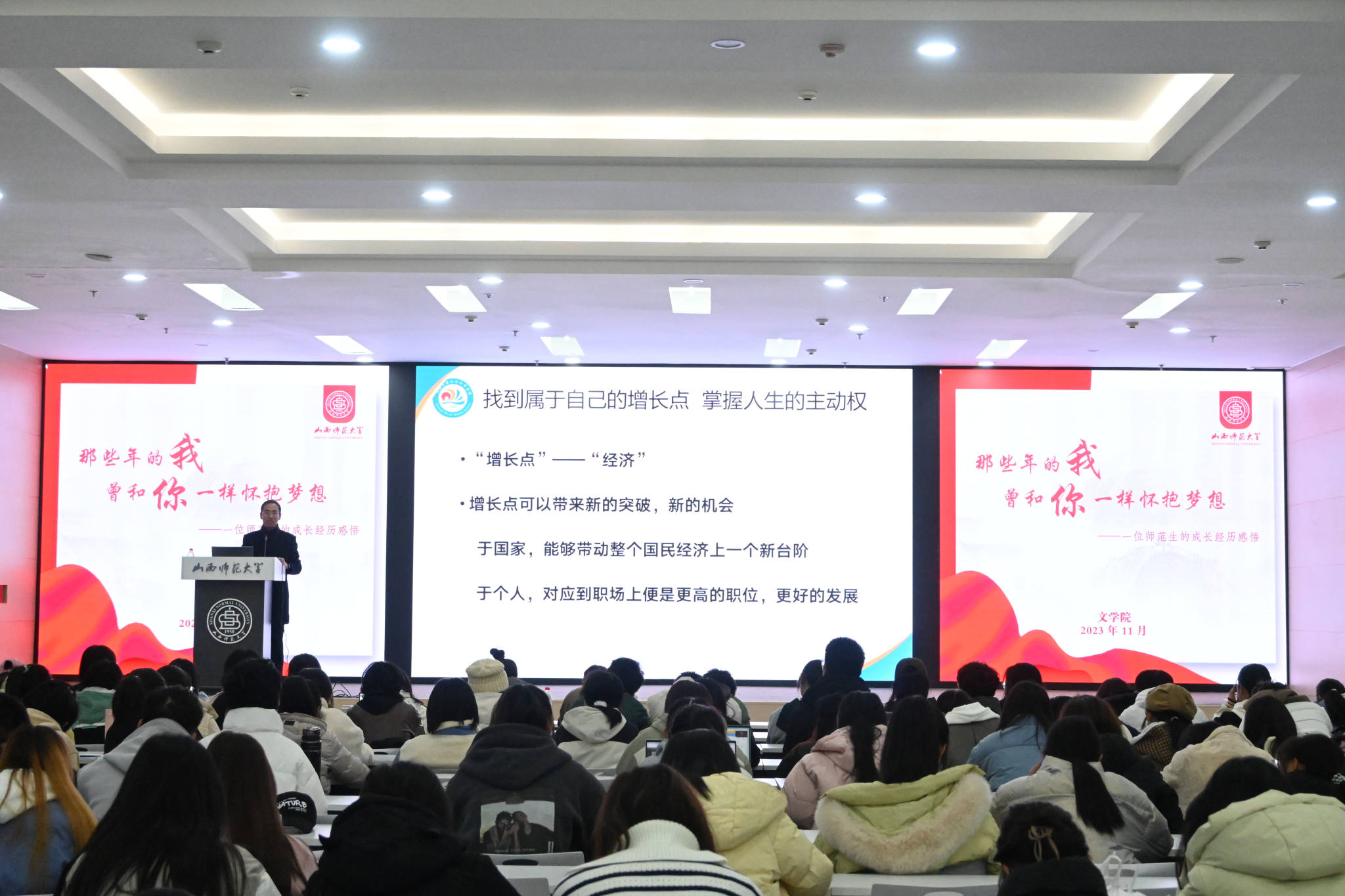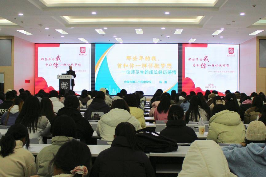 11月19日上午,vsport官方网站在北区2号楼报告厅开展“那些年的我,曾和你一样怀抱梦想——一位师范生的成长经历感悟”主题讲座。讲座由杨勇老师主讲,副经理李晓敏主持,23级全体同学参加。