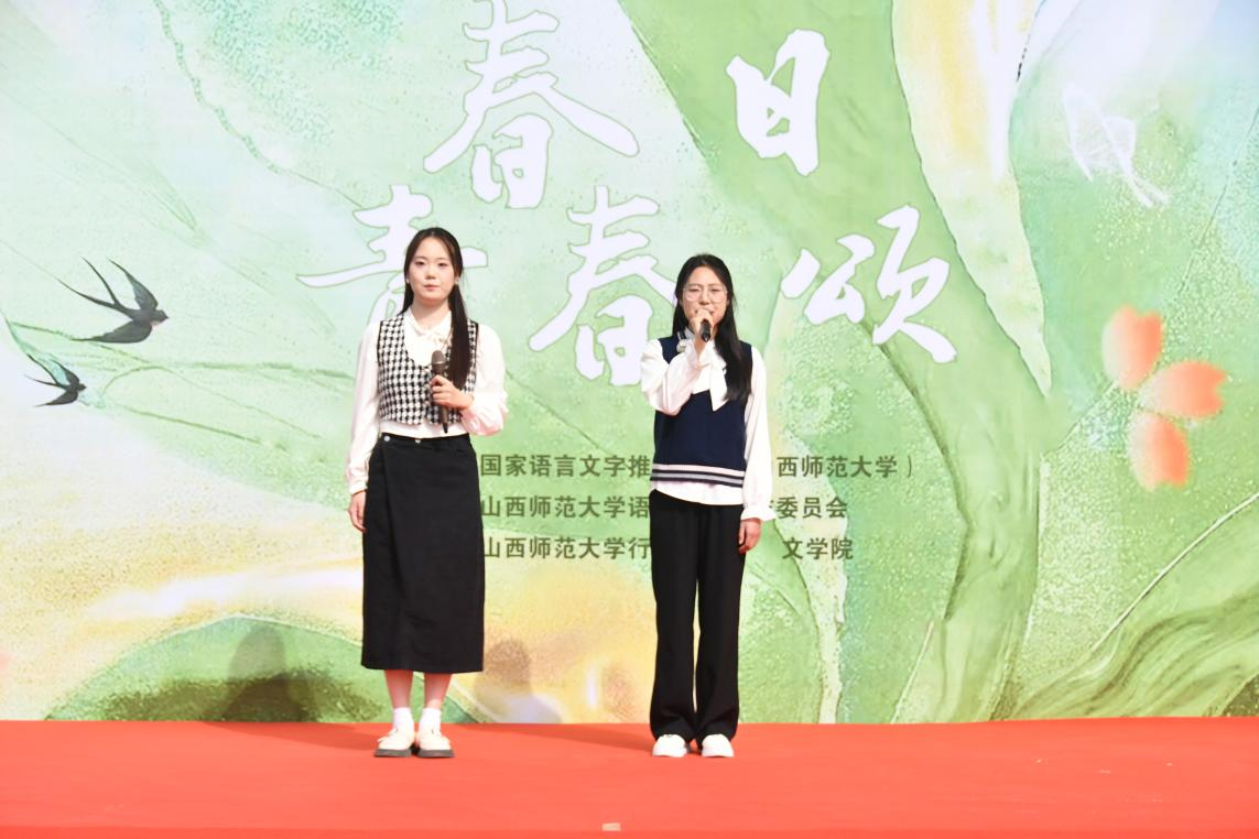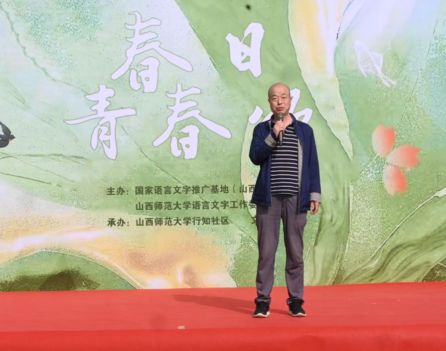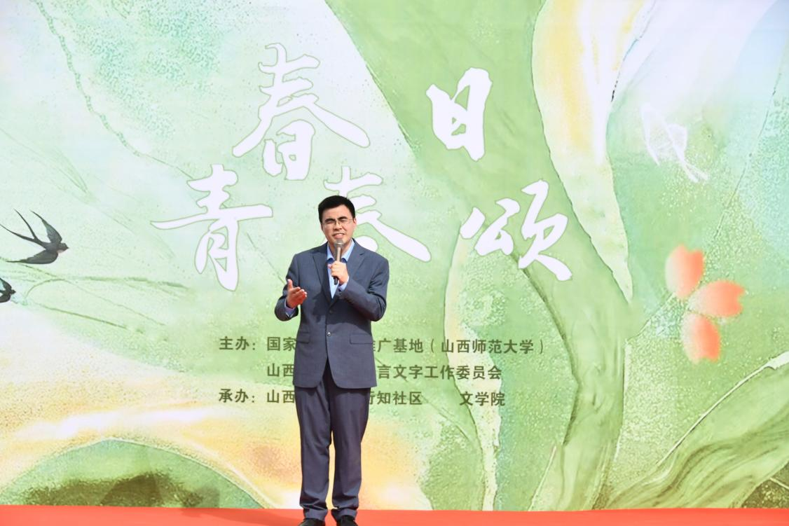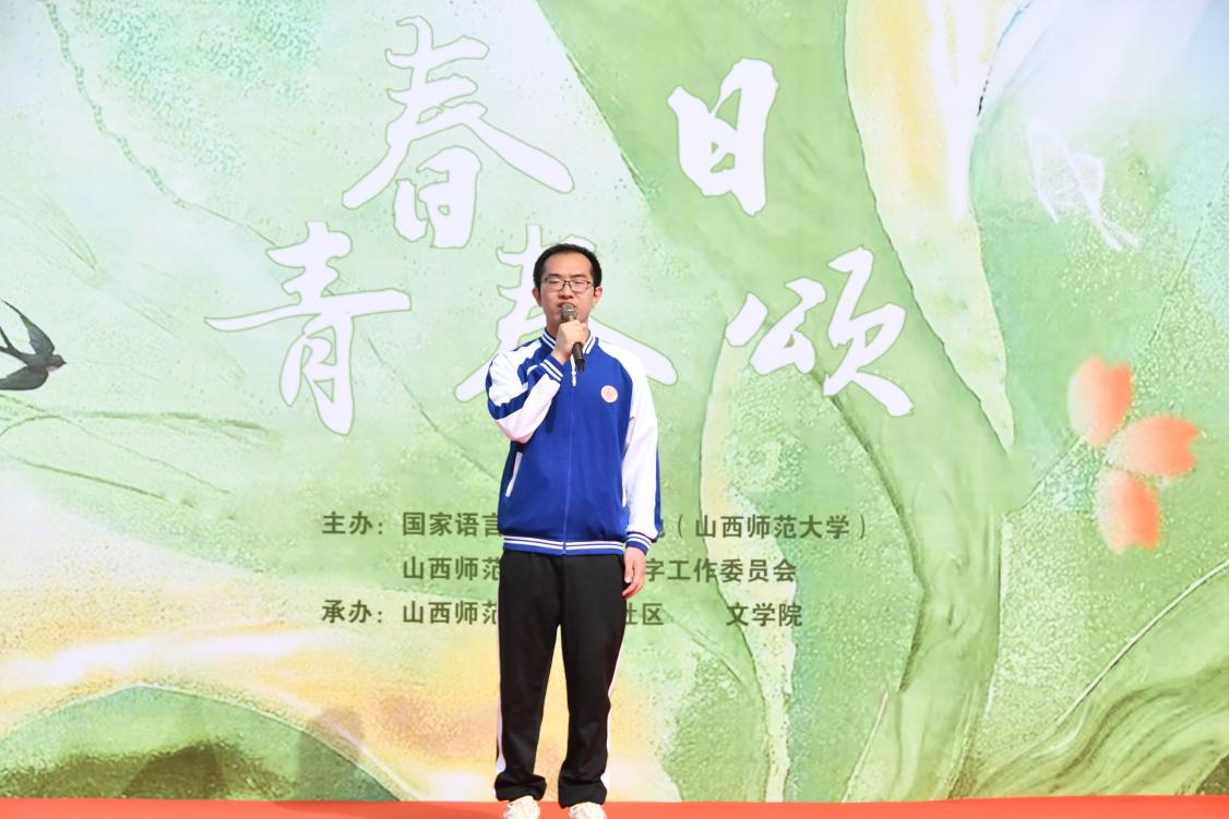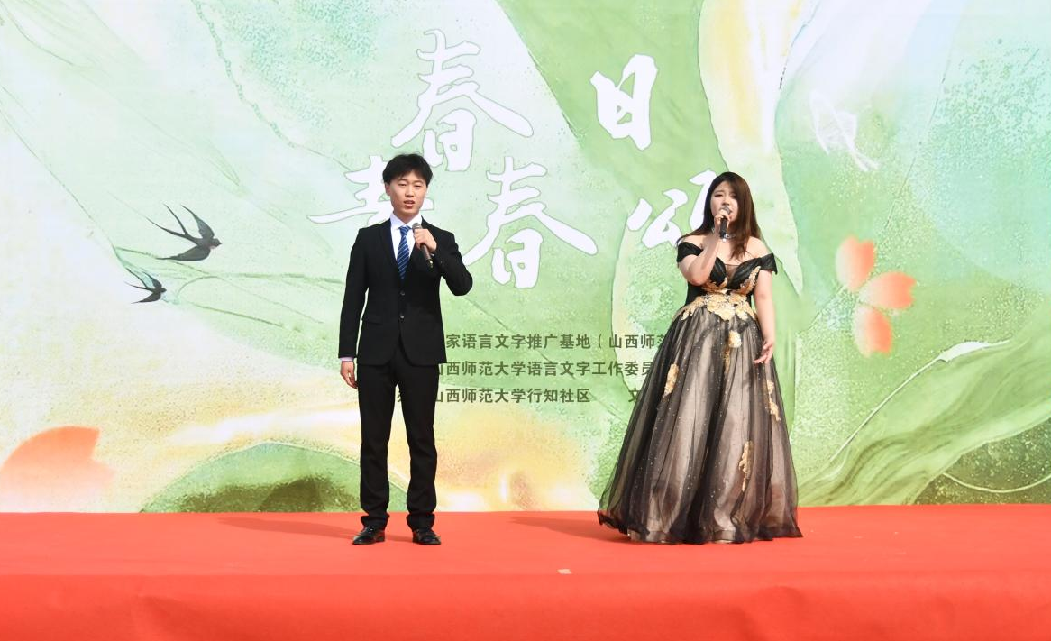 草树知春不久归,百般红紫斗芳菲。4月14日下午,由国家语言文字推广基地(vsport官方网站)、vsport官方网站语言文字工作委员会主办,vsport官方网站联合行知社区承办的“春日青春颂”读书主题活动在公司博学广场成功举办。太原市第二外国语公司栗红老师、安晋伟老师、太原市第三实验中学闫伟老师、张俊婷老师,公司vsport官方网站王国明老师,以及vsport官方网站、音乐公司众多优秀学子应邀进行才艺展示。vsport官方网站副经理李晓敏、关黑拽、樊琳琳等与近200名同学参加了活动。