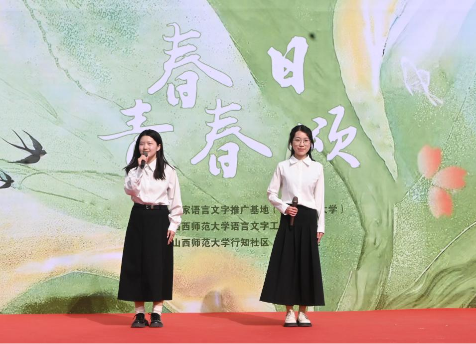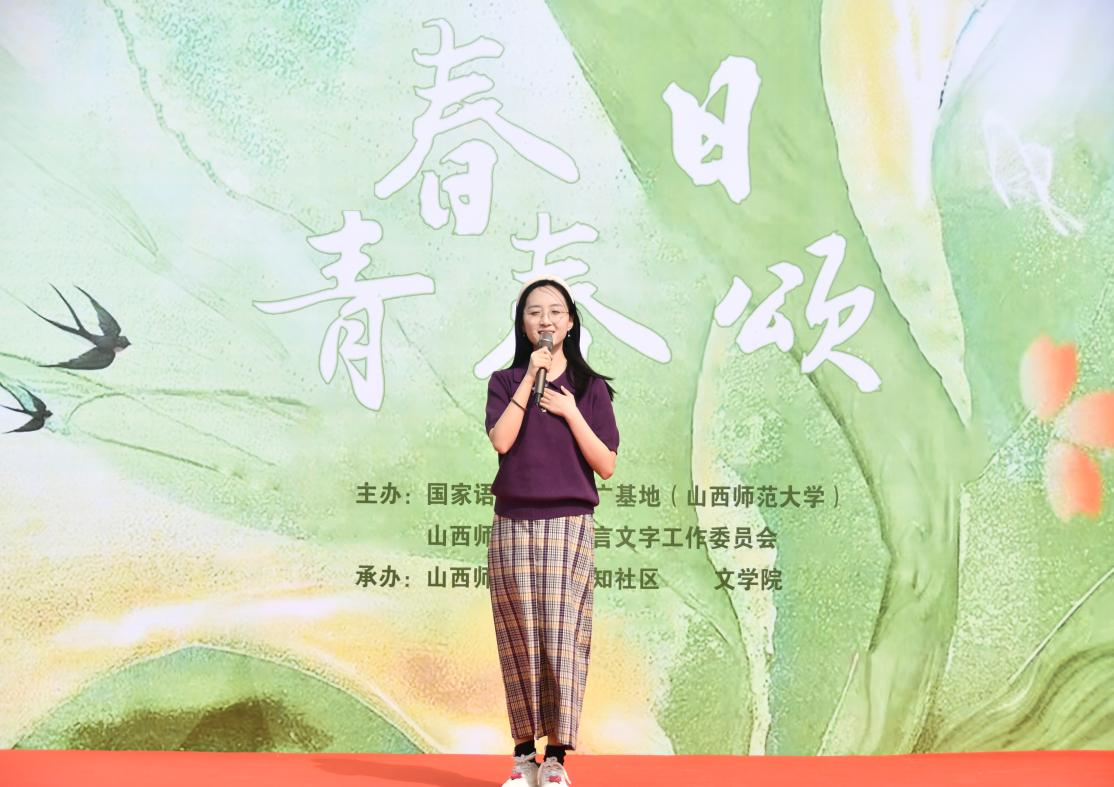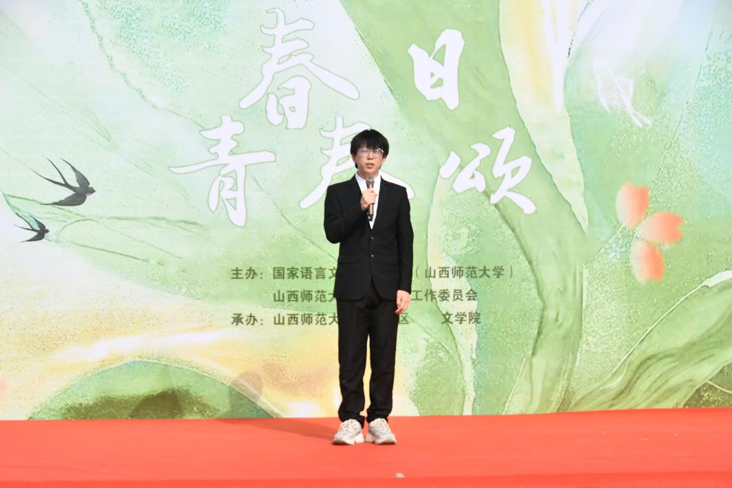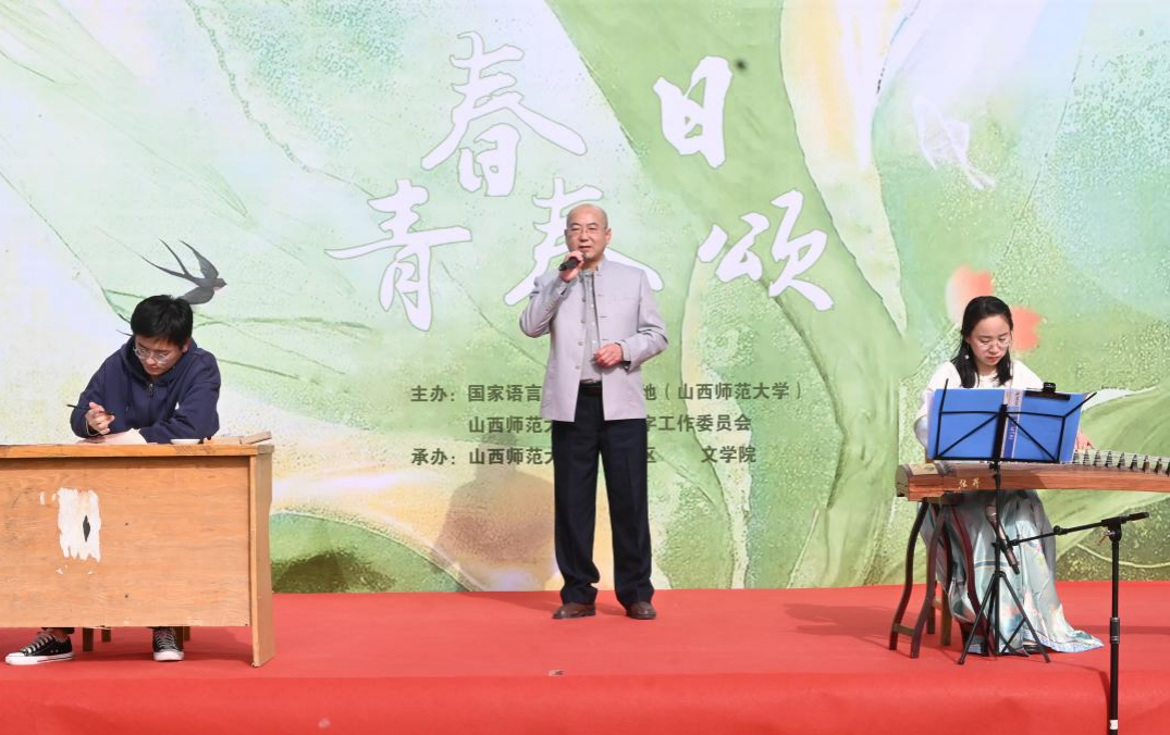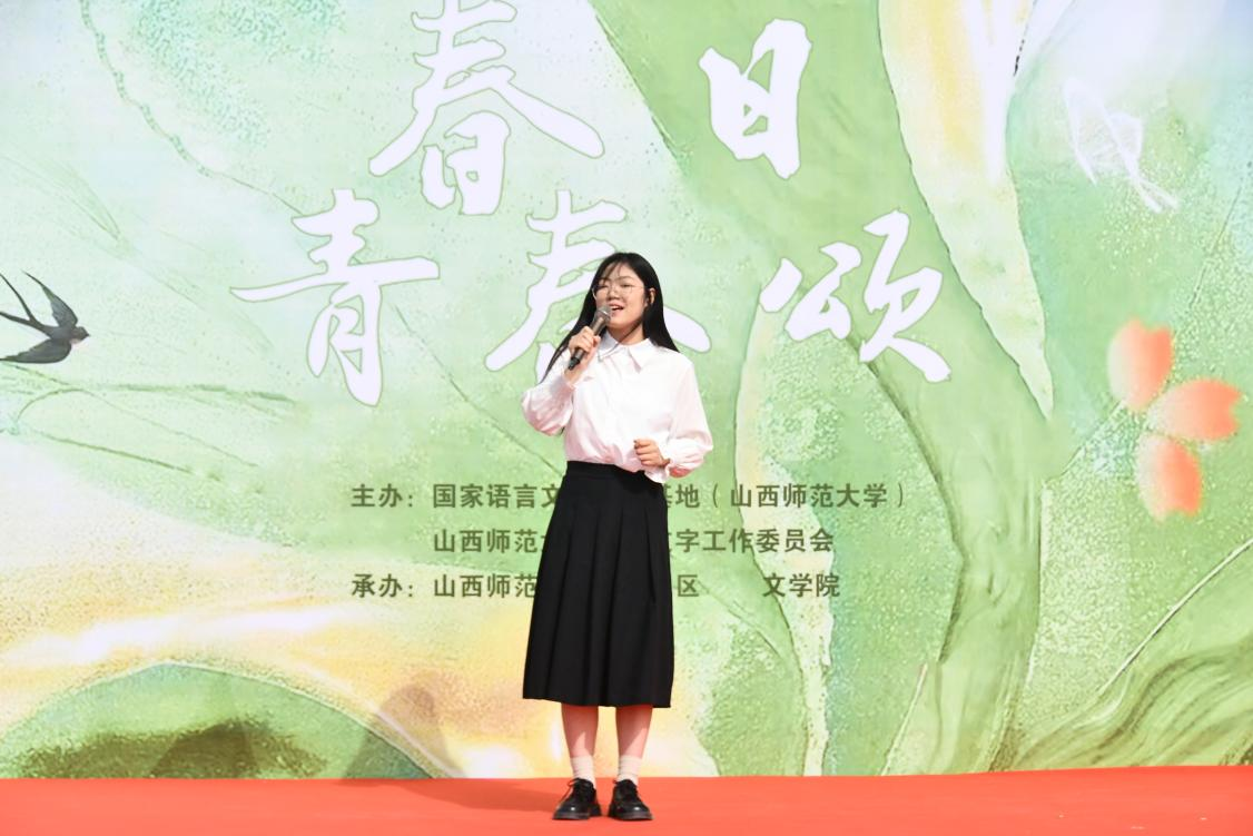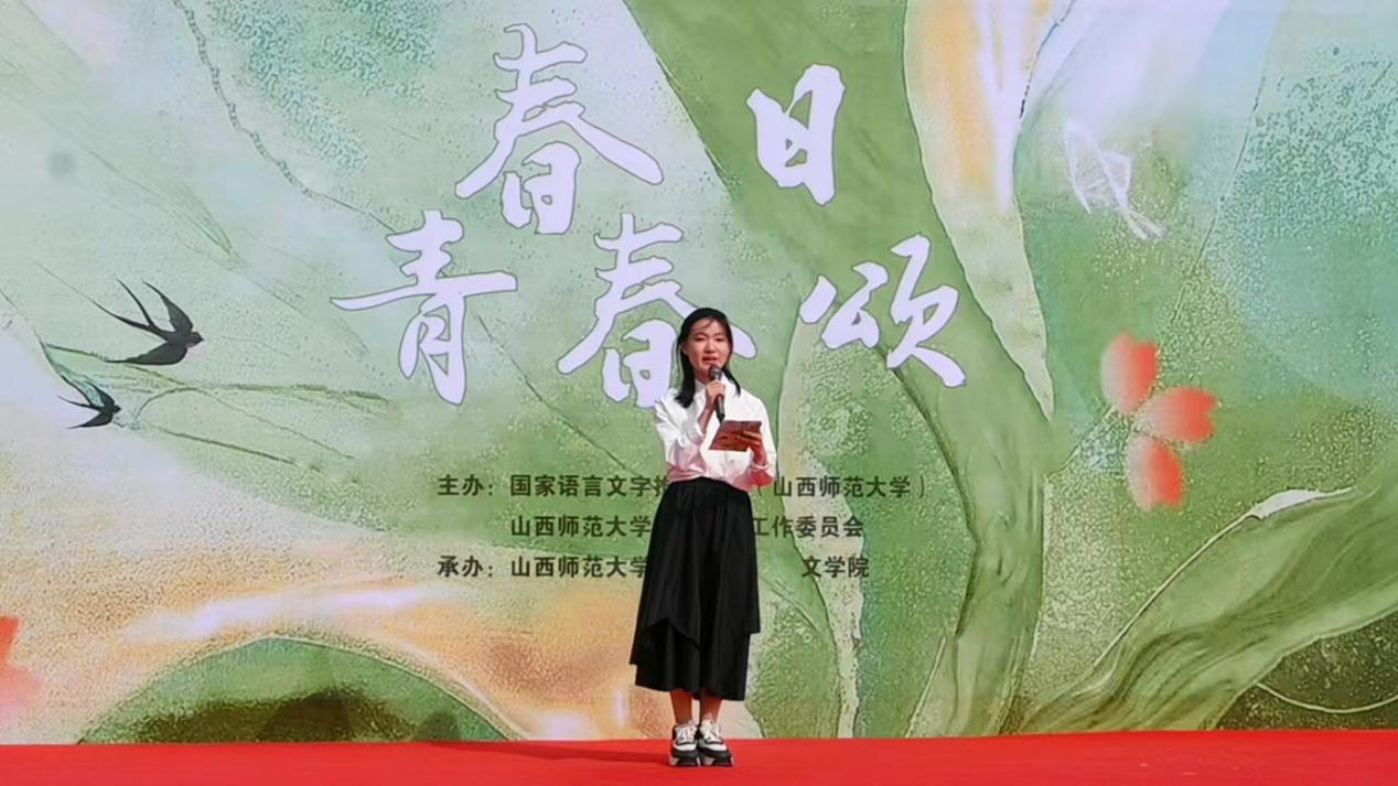 草树知春不久归,百般红紫斗芳菲。4月14日下午,由国家语言文字推广基地(vsport官方网站)、vsport官方网站语言文字工作委员会主办,vsport官方网站联合行知社区承办的“春日青春颂”读书主题活动在公司博学广场成功举办。太原市第二外国语公司栗红老师、安晋伟老师、太原市第三实验中学闫伟老师、张俊婷老师,公司vsport官方网站王国明老师,以及vsport官方网站、音乐公司众多优秀学子应邀进行才艺展示。vsport官方网站副经理李晓敏、关黑拽、樊琳琳等与近200名同学参加了活动。