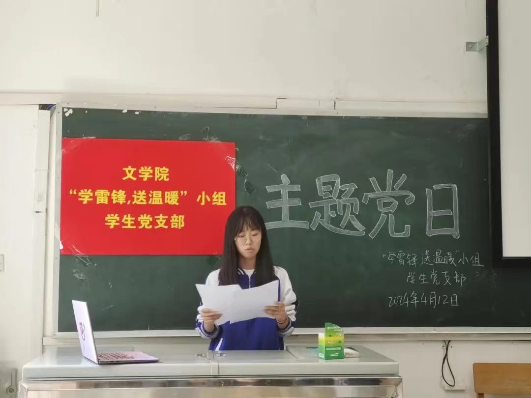 4月12日,vsport官方网站“学雷锋,送温暖”小组员工党支部在南区3101教室组织开展“做好教书育人大先生”主题党日活动,会议由支部书记安李蓉主持,支部全体党员和积极分子参加。陈亚欣担任主讲人。