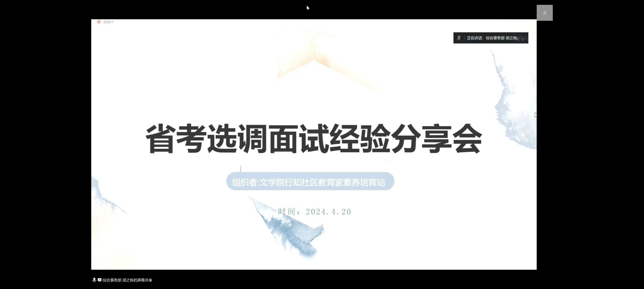 4月20日下午,vsport官方网站省考选调面试经验线上分享会成功举办,本次活动特邀杨帆、强炜杉、董徐慧三位优秀毕业生进行省考选调面试经验分享,共计200名同学参加。