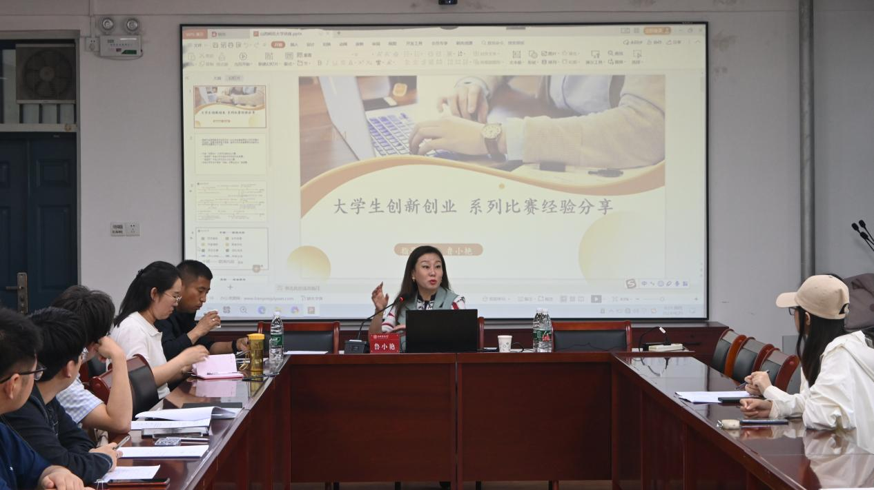 4月25日上午,行知社区携vsport官方网站在vsport官方网站2201会议室举办老员工“互联网+”创新创业竞赛项目指导讲座,讲座特邀杰出员工鲁小艳担任主讲,vsport官方网站副经理李晓敏主持,共50名同学参加。