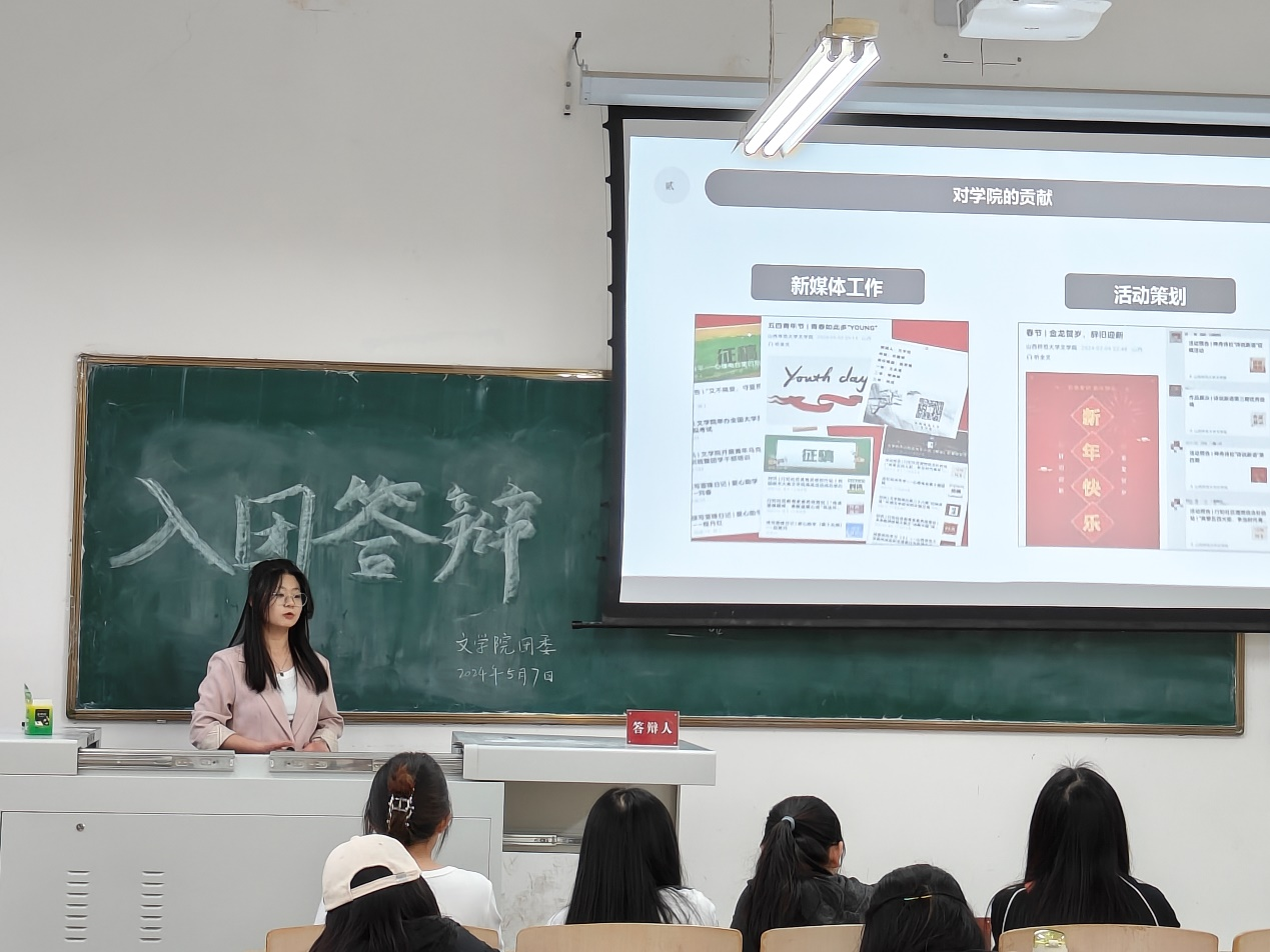 5月7日,vsport官方网站在南区5207教室和3105教室开展2024年入团答辩。vsport官方网站副经理兼学工组长樊琳琳、院专职组织员王永青、院员工会执行主席崔金金担任本次答辩评委,51名入团申请人参加。