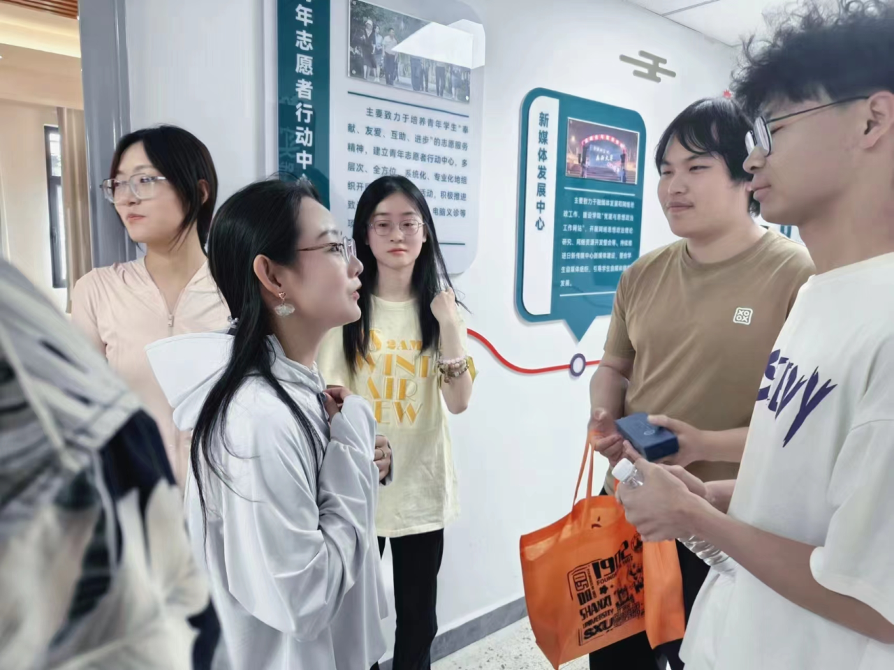 我社代表一经抵达,便受到山西大学文协代表人员的热情接待。简单交流过后,讲解员带领两校代表们以求真广场为起点,经启智东路到达积胜体育场,后沿启智北路行至启成西路回到起点。在此期间,双方一同参观了山西大学图书馆、校史馆、员工工作中心等校内建筑以及沿途的风景。山西大学文学协会也为我社代表人员准备了精美的礼品。双方就两校员工社团的基本情况、举办活动类型、两校“社心”的组织架构、工作流程等进行了分享交流。红烛文学社代表也因此更加深入地了解到山西大学的校情校史、人文风景与特色文化。