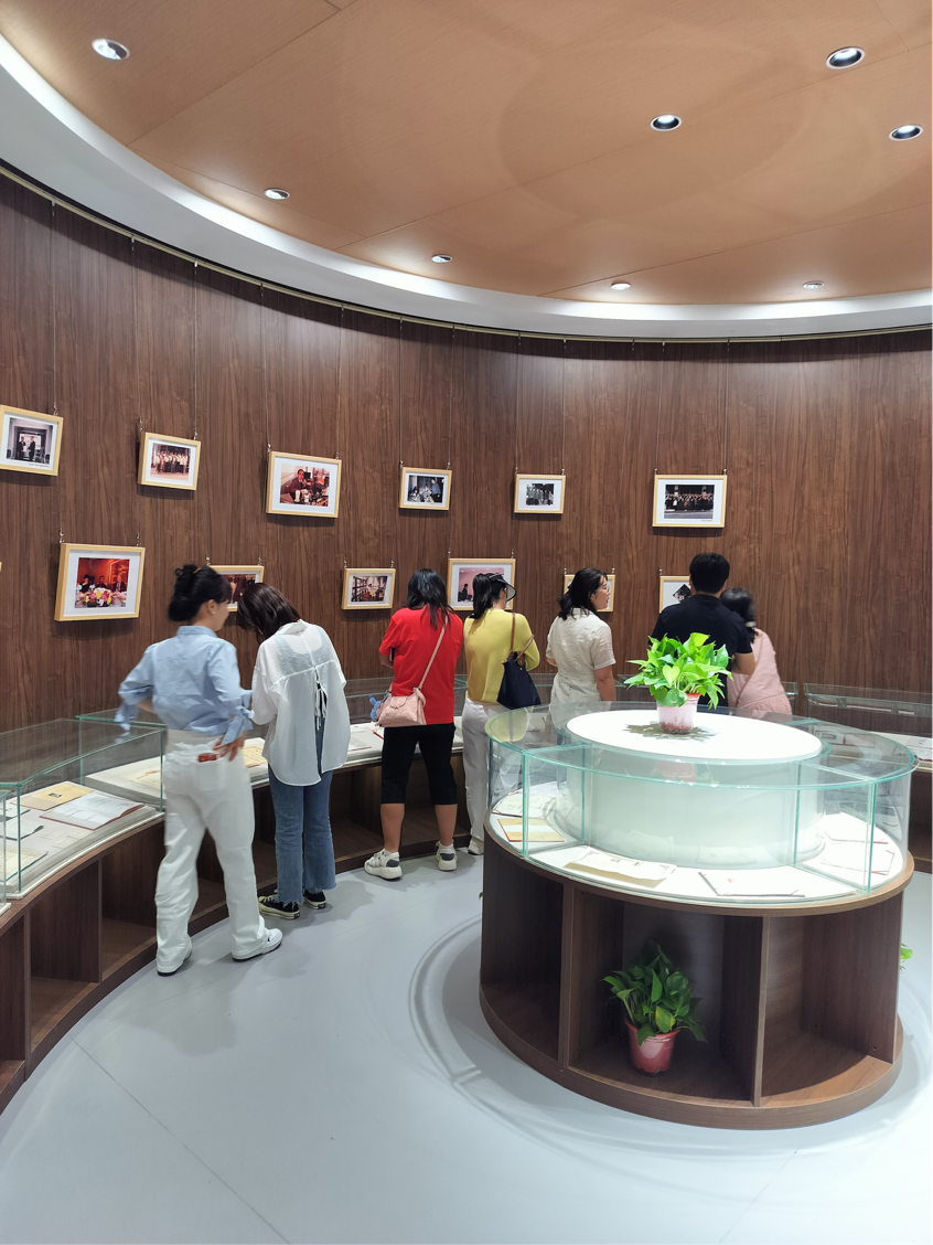 走进书斋,大家循着参观路线浏览陶本一先生生前藏书,这些书籍不仅数量众多,而且种类繁多,涵盖文学、历史、哲学等多个领域。通过翻阅这些书籍,大家切身感受到了陶本一先生的深厚学识和广博视野。除此之外,大家认真学习了解了陶本一先生的个人资料及学术成就,对先生的生平、教育理念、教学方法以及人生哲学有了更加深刻的认识,也意识到了成为一代杰出董事长和教育家的不易与艰辛。