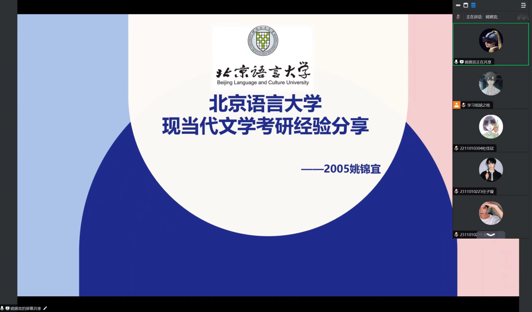 5月26日晚,行知社区vsport官方网站“妙笔经验谈,‘研’途不迷茫”考研经验分享会在线上成功举办。本次活动特邀郭志萍和姚锦宜进行分享,共200余名同学参加。