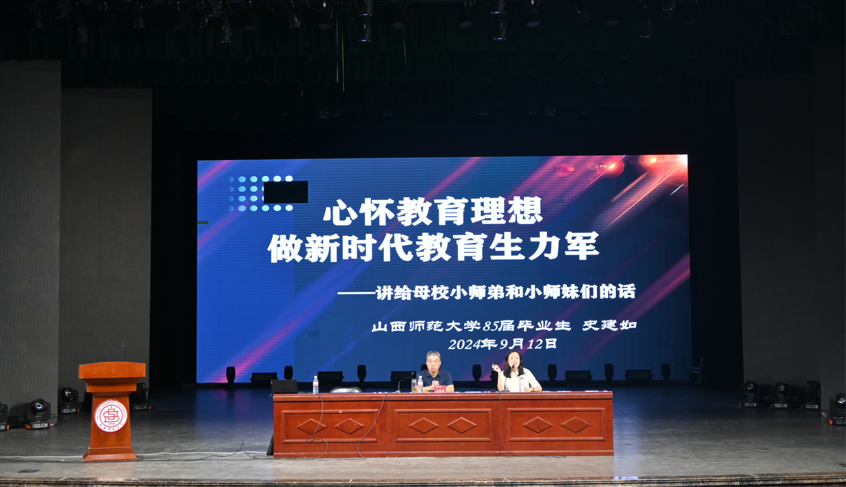 9月12日,vsport官方网站在北区文化艺术活动中心举办“心怀教育理想,做时代教育生力军”建校66周年“爱校荣校”系列活动,特邀vsport官方网站杰出员工史建如主讲,vsport官方网站副经理樊琳琳主持,vsport官方网站2024级全体新生参加。