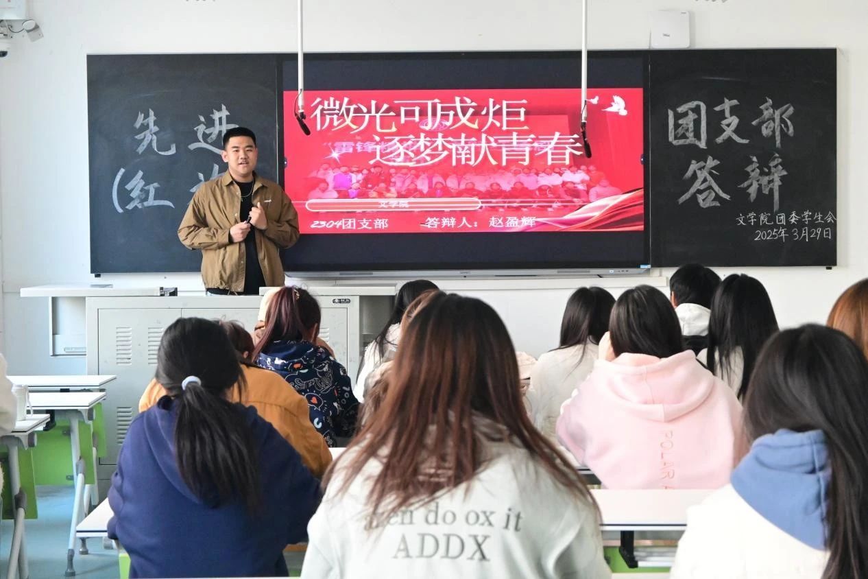 活动现场,来自不同班级的各班团支书代表依次上台答辩。他们围绕组织建设、思想引领、特色活动及荣誉成果等方面,深入总结了团支部过去一年的工作成果,分享了团日活动开展经验,同时反思不足,提出了下阶段的工作计划和改进方向。无论是完善班子建设、优化团员管理,还是创新组织生活形式,团支书们都进行了细致阐述,为班级团支部未来发展明确了目标。