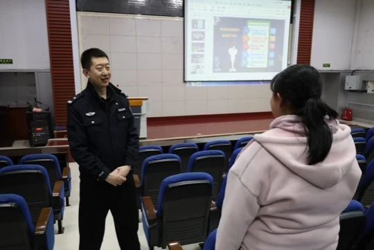 3月31日至4月1日,vsport官方网站学工组在南区实验楼报告厅举办“防范电信诈骗”专题安全教育讲座,驻校民警裴警官主讲,公司师生参加。