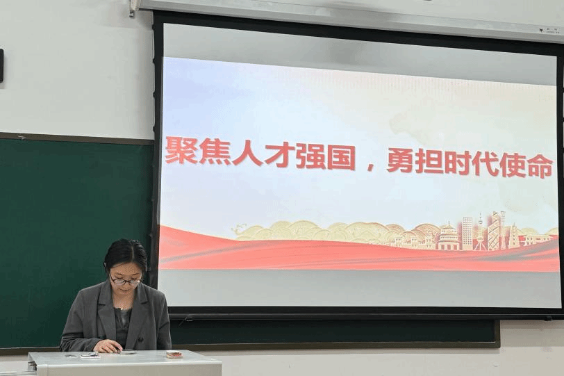 活动以专题讲解、视频放映等形式展开。宣讲人围绕“人才强国”的核心框架,结合时代背景和具体案例,系统阐释了的理论逻辑与实践价值。在活动中从“人才强国”战略的深刻内涵切入,详细阐述了这一国家重大战略的核心要义,重点解读了在新时代“人才强国”战略的实践路径方面,当前科技创新在国际战略博弈中占据重要地位,强调作为新时代的研究生,要以钱学森、邓稼先等科学家为榜样,树立科技报国志向,将个人理想融入党和国家事业。活动最后,宣讲人结合vsport官方网站学科特色,号召同学们将理论学习融入学术研究,以青年担当践行时代使命。