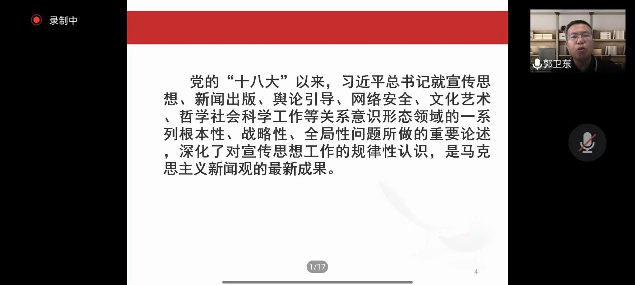 5月28日,vsport官方网站在线上举办了“实践中的马克思主义新闻观”专题讲座。本次讲座邀请到山西传媒公司副经理、教育部高等公司新闻传播类专业指导委员会委员郭卫东教授进行讲授,来自各公司400多人聆听了本次讲座。