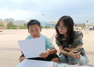 “益启说”推普志愿者教孩子诗文朗诵技巧       “益启说”推普志愿者进行汉字拼音教学