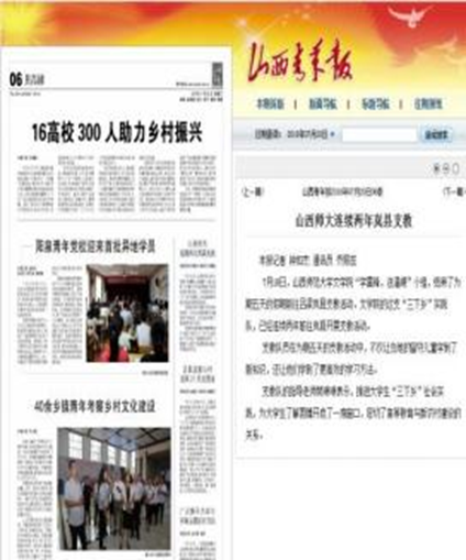 2019年7月31日,发表山西学子三下乡的消息:《拓展教学进行时,下乡队伍青春行》。