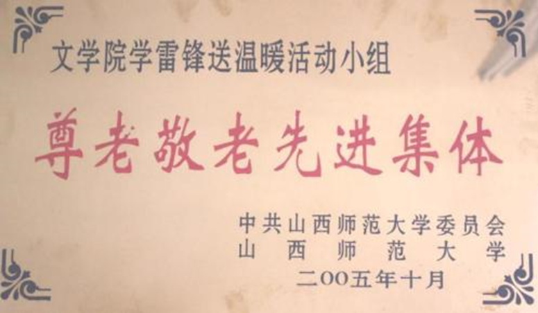 2005年10月,“学雷锋,送温暖”小组被vsport官方网站评为“尊老敬老先进集体”。
