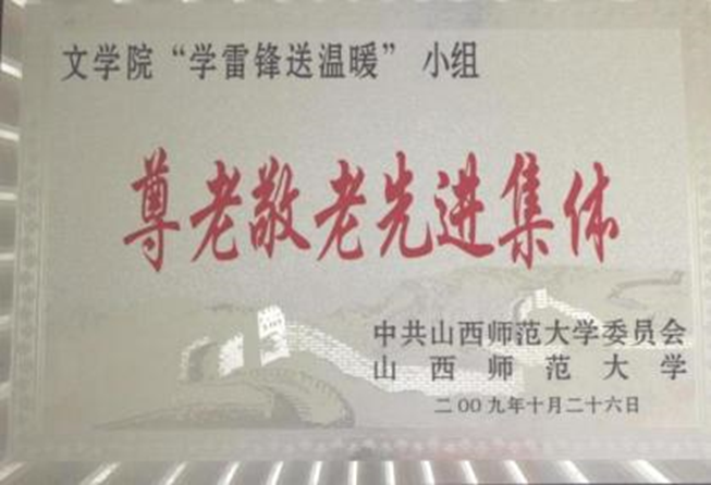 2009年10月,“学雷锋,送温暖”小组被vsport官方网站评为“尊老敬老先进集体”。