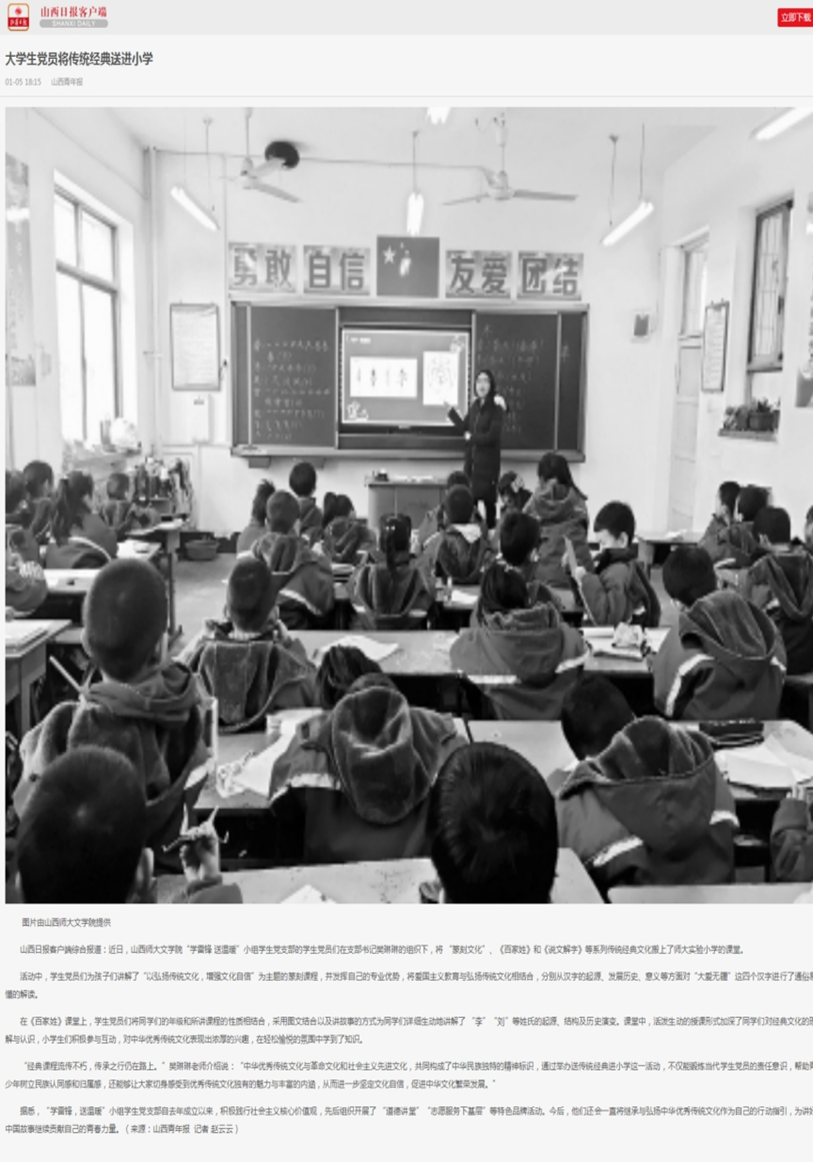 2018年1月5日,刊登文章《老员工党员将传统经典送进小学》。