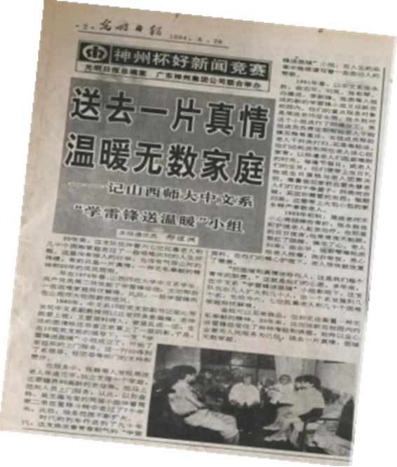 1994年6月29日,发表文章《送去一片真情温暖无数家庭---记山西师大中文系“学雷锋送温暖小组”》。