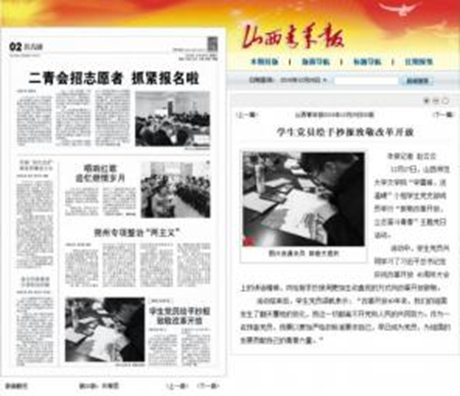 2014年3月5日,报道山西师大“学雷锋送温暖小组”爱心传递34年。