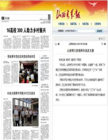 2022年8月1日,刊登文章《山西学子三下乡:爱心助学行,夏日暖童心》。